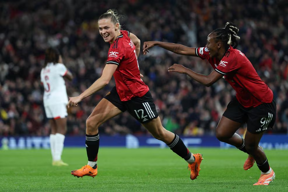 O primeiro tempo foi bastante equilibrado para as duas equipes, que finalizaram seis vezes cada uma. No início, o PSG pressionou mais a equipe da casa, mas depois as inglesas se mostraram presentes. Aos 31 minutos, Melvine Malard recebeu um lindo lançamento de Jayde Riviere, ganhou a disputa com a zagueira Griedge Mbock Bathy e abriu o placar para as Red Devils. Nos acréscimos, a espanhola Olga Carmona empatou para as francesas com um chute a longa distância. Na segunda etapa, Fridolina Rölfo colocou o time de Manchester na frente novamente após cruzamento de Anna Sandberg.